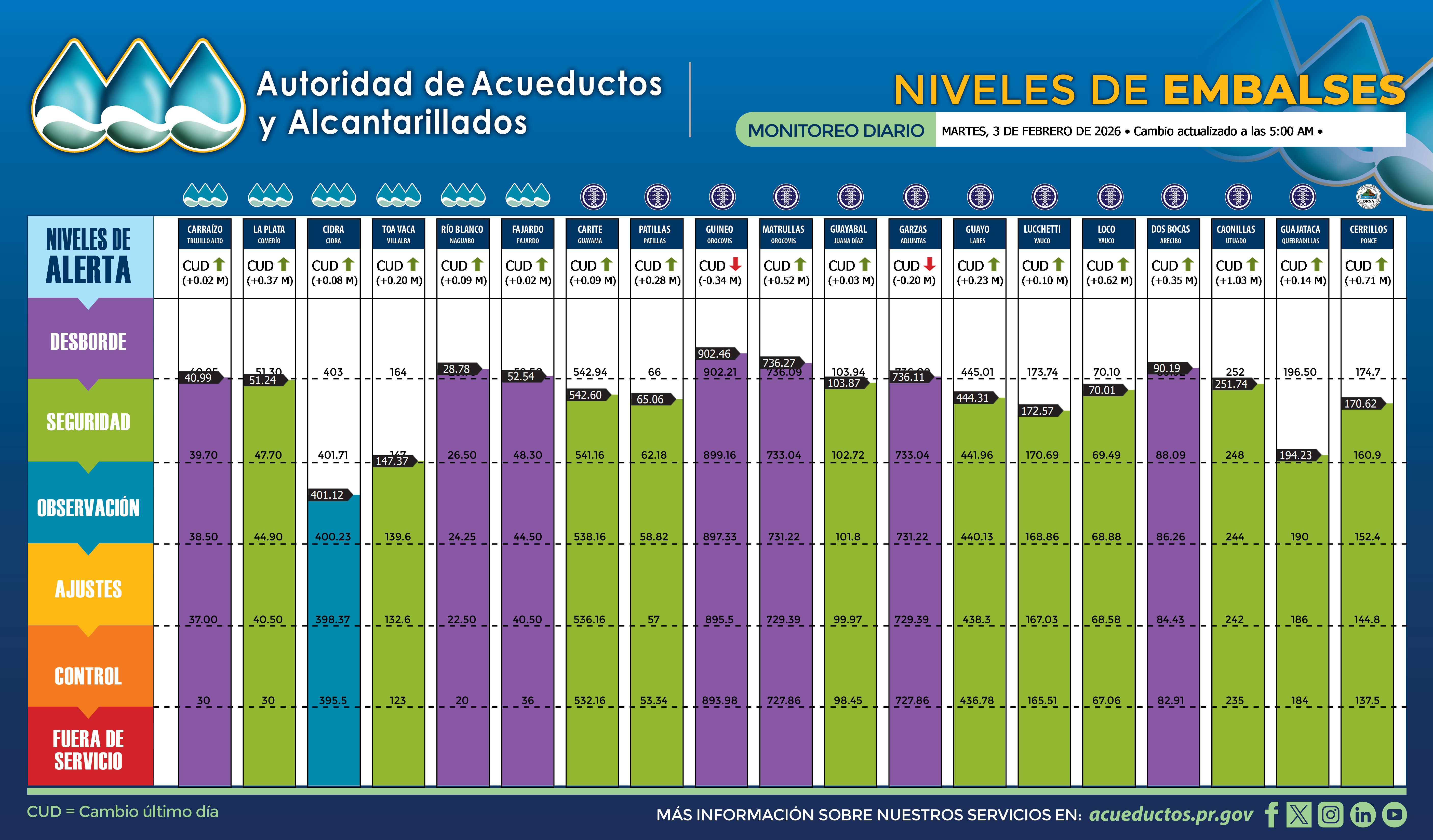 Construido fuera del cauce del Río Fajardo. Construido para la AAA por la firma Río Construction, fue terminado en el 2006.